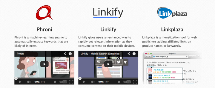 Studio Ousia, the Japan-based startup behind text-linking service Phroni, has announced 100 million yen (US$953,000) in new funding from Nippon Information Development. While the cash infusion will be focused on new products – Linkify and Linkplaza – Phroni was featured at Tech in Asia’s very first Startup Arena pitch battle in 2012.